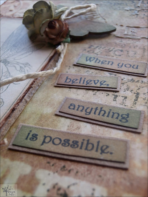 Inspired by two different challenges, I made this mixed-media fairy card. I used Stempel&Kartoon masks, my favourite Crafter's Workshop clock stencil, a stamp from the Prima 'Engraver' collection, Distress Inks and modeling paste. The mixed media challenge at Craft Szafa required a piece of twine and something that flies - hence the chipboard moths from I Kropka. The 'Do you believe in fairies?' challenge at Craft Your Passion Challenges reminded me of the Graphic 45 'Once Upon a Springtime' papers lying on the shelf, abandoned - and that's where the pretty fairy comes from.