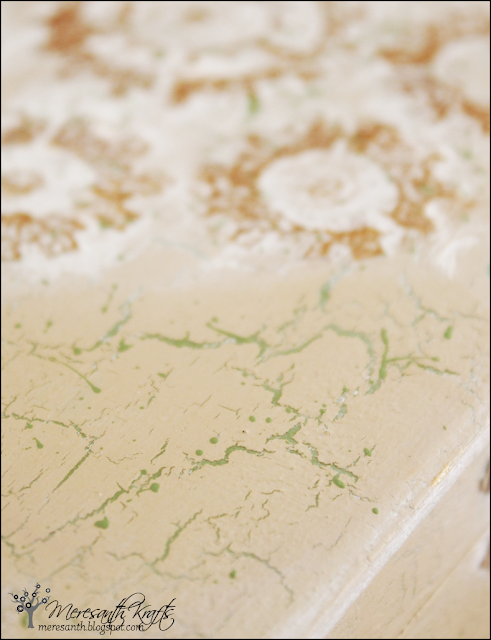 On top, I applied colour using diluted Fluid Acrylics - Burnt Sienna and Viridian. They're very pigmented, but I used just a tiny drop, mixing it with water and they gave more of a watercolour effect. Finally, some stenciled patterns, a little bit of black Distress Ink smeared over the edges - and here it is. I don't think I'll be giving up this crackle effect any time soon. :)